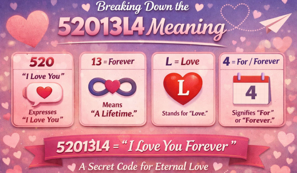 In a world where most of our conversations happen through screens, people are always finding new and creative ways to express their feelings. Codes like 52013L4 Meaning may look simple or even confusing at first, but behind those numbers and letters is a heartfelt message. For many people, it’s just another fun way to say something meaningful without typing a long sentence. What makes the 52013L4 meaning special is the emotion behind it. It represents love, commitment, and the idea of staying connected with someone for a long time. Whether it’s sent in a text message, used in a social media caption, or shared between couples as a private code, the message remains the same – a promise of lasting affection.