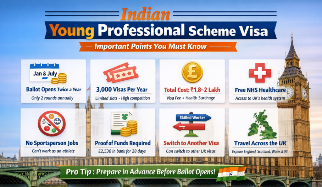 For young Indians looking to gain international exposure through work opportunities, the Indian Young Professional Scheme Visa can be a good option. It opens so many doors, it allows you to work in the UK, study in the UK, it also allows you to go anywhere, the fact that you are not bound to a job offer. The ballot system does add some unpredictability to it but if you plan well ahead and apply at the right time then your chances would be greater. So, if you are eligible, do not miss this opportunity to shape a global future.