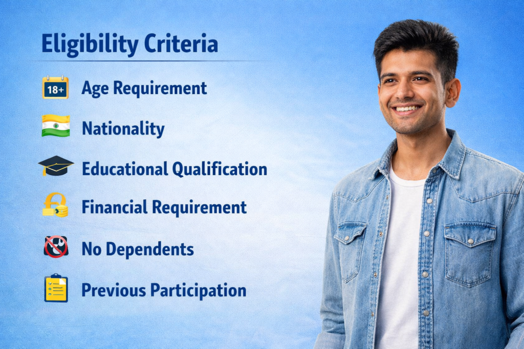 Eligibility: Open to Indian citizens aged 18-30 years and a bachelor’s degree and required savings.
